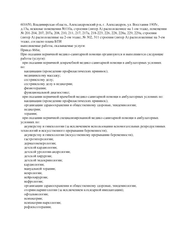 601650, Российская Федерация, Владимирская область, м. р-н Александровский, г.п. город Александров, г. Александров, ул. Восстания 1905 г., д. 13а